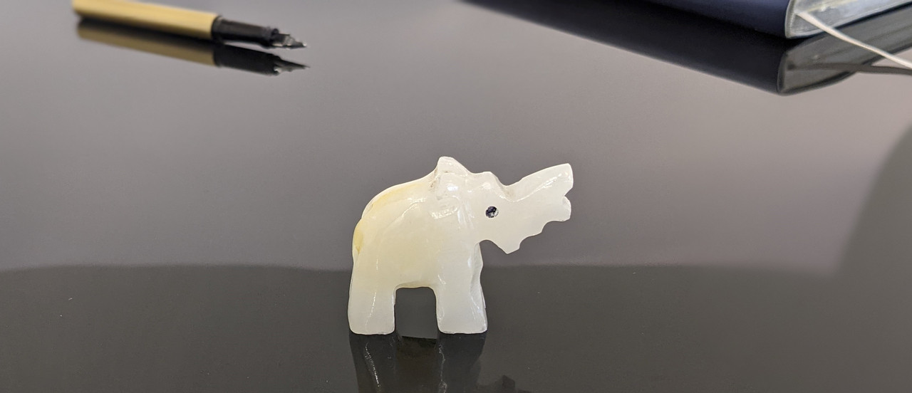 Слон зроблений вручну з натурального напівдорогоцінного каменю онікс (виробництво Пакистан) . Упакований у маленьку картонну подарункову коробку теж, зроблену вручну. 7-слон із оніксу та Слон — символ добробуту та достатку в домі.Онікс — камінь, який підходить усім знакам зодіаку.